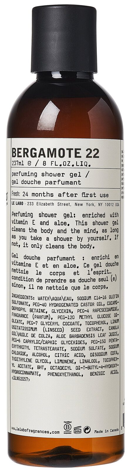 Tento sprchový gel s vůní Bergamote 22, obohacený o antioxidační vitamín E a hydratační olivový olej, aloe vera a výtažky ze lněných semínek, čistí tělo i mysl. Tedy jen v případě, že se sprchujete sami. V opačném případě čistí pouze tělo. Přípravek neobsahuje parabeny, je veganský a není testovaný na zvířatech.
